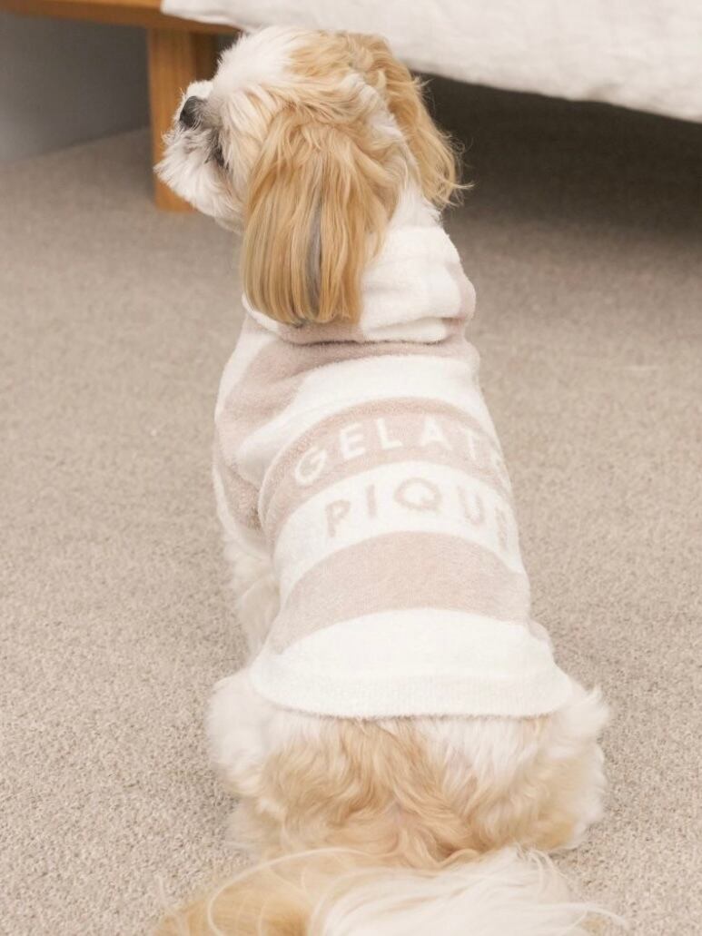 なめらかな’スムーズィー’素材を使用した、定番2色ボーダーのDOG用フーディーがリニューアルしました。背中のロゴがジャガード仕様になり、よりアクセントの効いたデザインになりました。着せやすいプルオーバータイプです。ライトな素材感でオールシーズンでお楽しみいただけます。S~Lは超小型犬から小型犬くらいまでのサイズ感。色はこれまで大人気だったブルー、ピンク、ベージュの3色のほか、クールな新色ネイビーも登場しました。