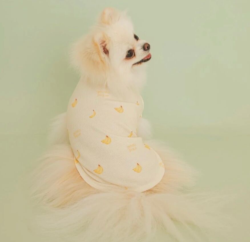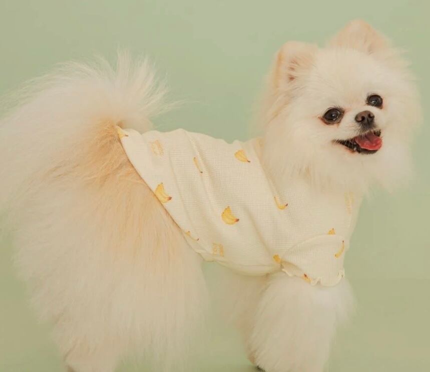 柔らかなワッフル編みカットソーに、色とりどりのフルーツ柄をプリントしたCAT&DOG用プルオーバーです。春を感じる明るいカラーリングと、メローを効かせた袖がキュートな印象。色はストロベリー柄のピンク、バナナ柄のイエロー、メロン柄のグリーンの全3色です。ほかに、同シリーズのニットプルオーバーやトイもご用意しています。