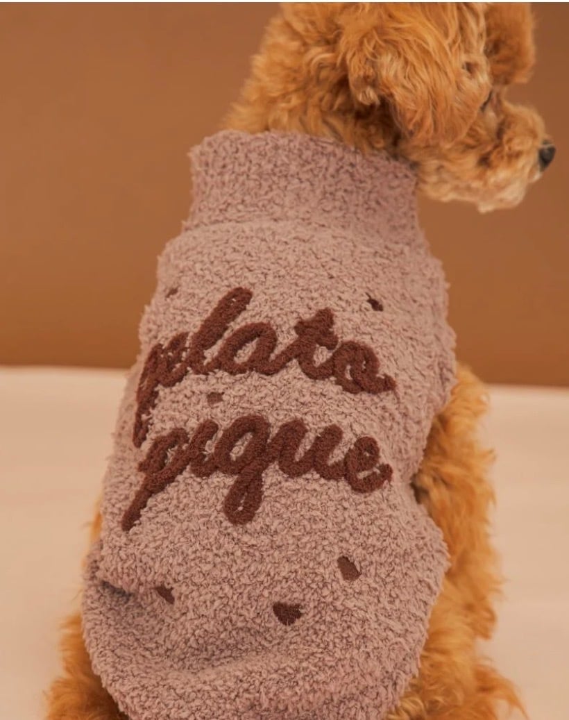 ニットで表現したモコモコのロゴに、写真映えする小さなハート柄を散りばめたハイネックプルオーバーです。軽くて暖かみを感じる肌触りのニットなので、まだまだ寒さが残る春先までのお散歩にも重宝します。色はアイボリーとピンク、ブラウンを揃えました。3色展開なので、きょうだいで色違いを揃えるのもおすすめ。同シリーズのハート型のトイとコーディネートしてお楽しみいただけます。