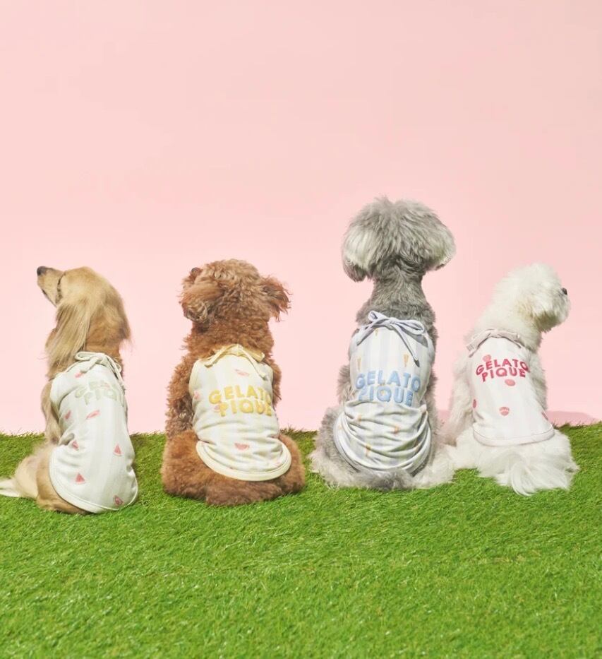 夏の気分を盛り上げるカラフルなストライプ柄に、弾けるフルーツやアイス柄をプリントしたCAT&DOGシリーズです。スイムウェア風のキュートなデザインで仕上げた、ひんやり心地良い接触冷感素材のプルオーバー。発泡プリントのぷっくりしたブランドロゴをあしらい、キャッチーに仕上げました。背中に保冷剤が入るポケット付きで、首元のリボンは洗濯がしやすいように解ける仕様になっています。色はラズベリー柄のピンク、グレープフルーツ柄のイエロー、スイカ柄のグリーン、アイス柄のブルーの4色展開。同シリーズの雑貨と組み合わせたり、きょうだいで色違いのコーディネートもおすすめです。