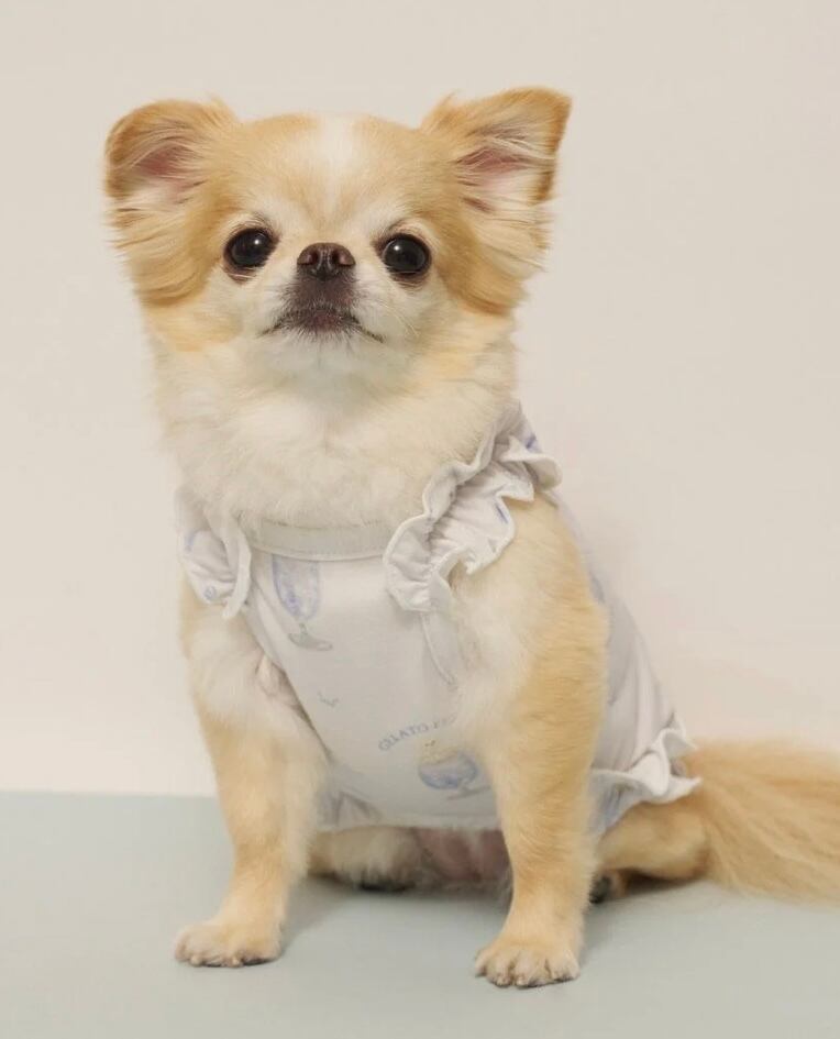小さなフリルの裾と、くしゅっとギャザーを寄せた肩紐がキュートな接触冷感素材のプルオーバーです。シロクマをモチーフにした夏らしいひんやりスイーツの絵柄を総柄プリント。背中に保冷剤を入れられるポケット付きで、暑さが気になる日のお散歩やお出かけにも重宝します。色は爽やかなピンクとブルーの2色展開。きょうだいで色違いコーディネートもおすすめです。