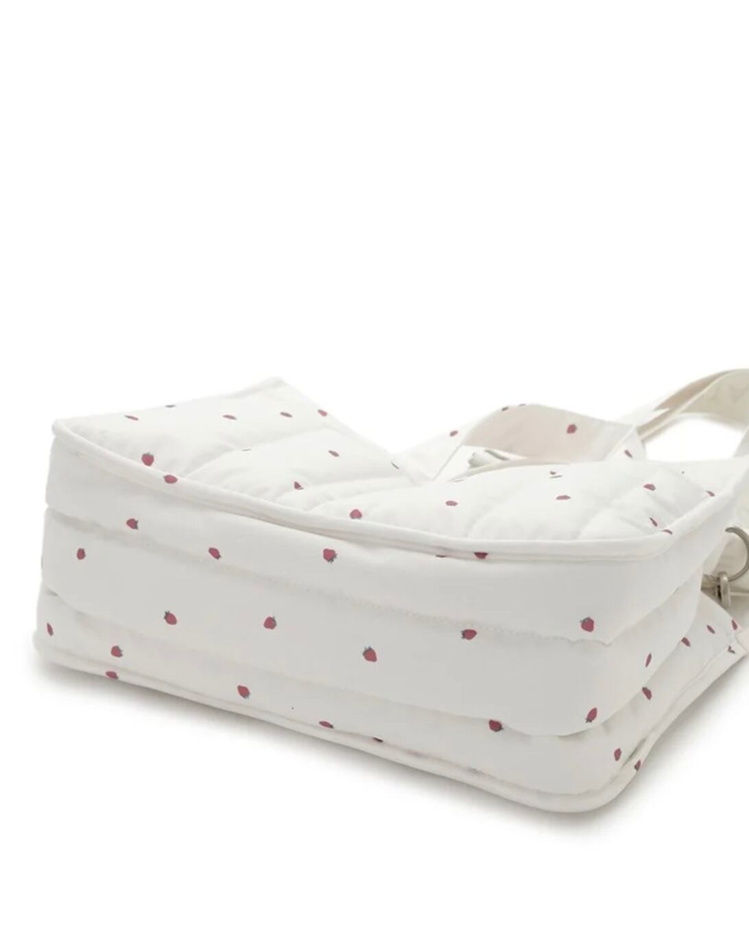 ストロベリー柄のキルティング素材でふんわりやわらかく仕上げました。